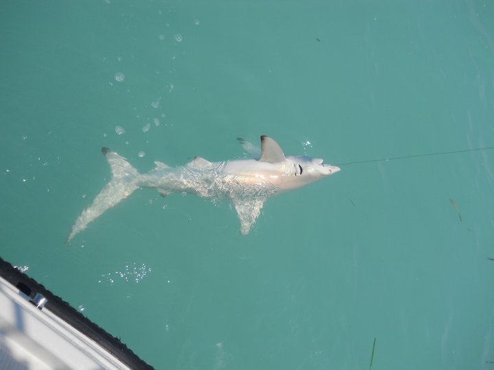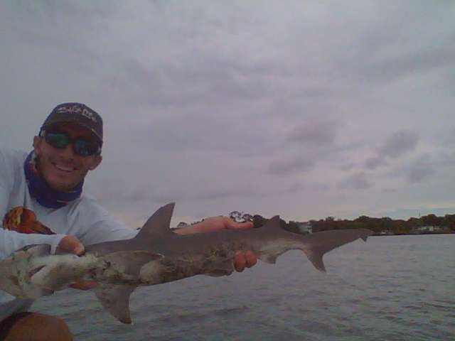 This Atlantic sharpnose took half a ladyfish and made several hard runs before it was subdued. It is not considered dangerous to people.